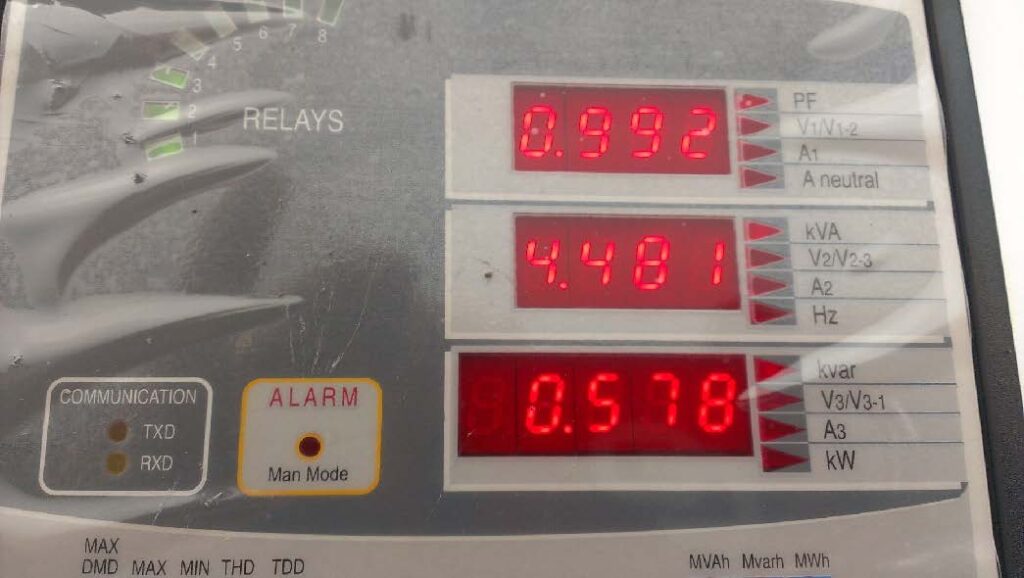 After: Post dynamic energy optimization device installation the reading shows .992 (99%).